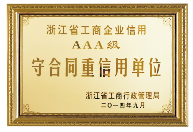 浙江省工商企業信仰AAA級守合同重信用單位